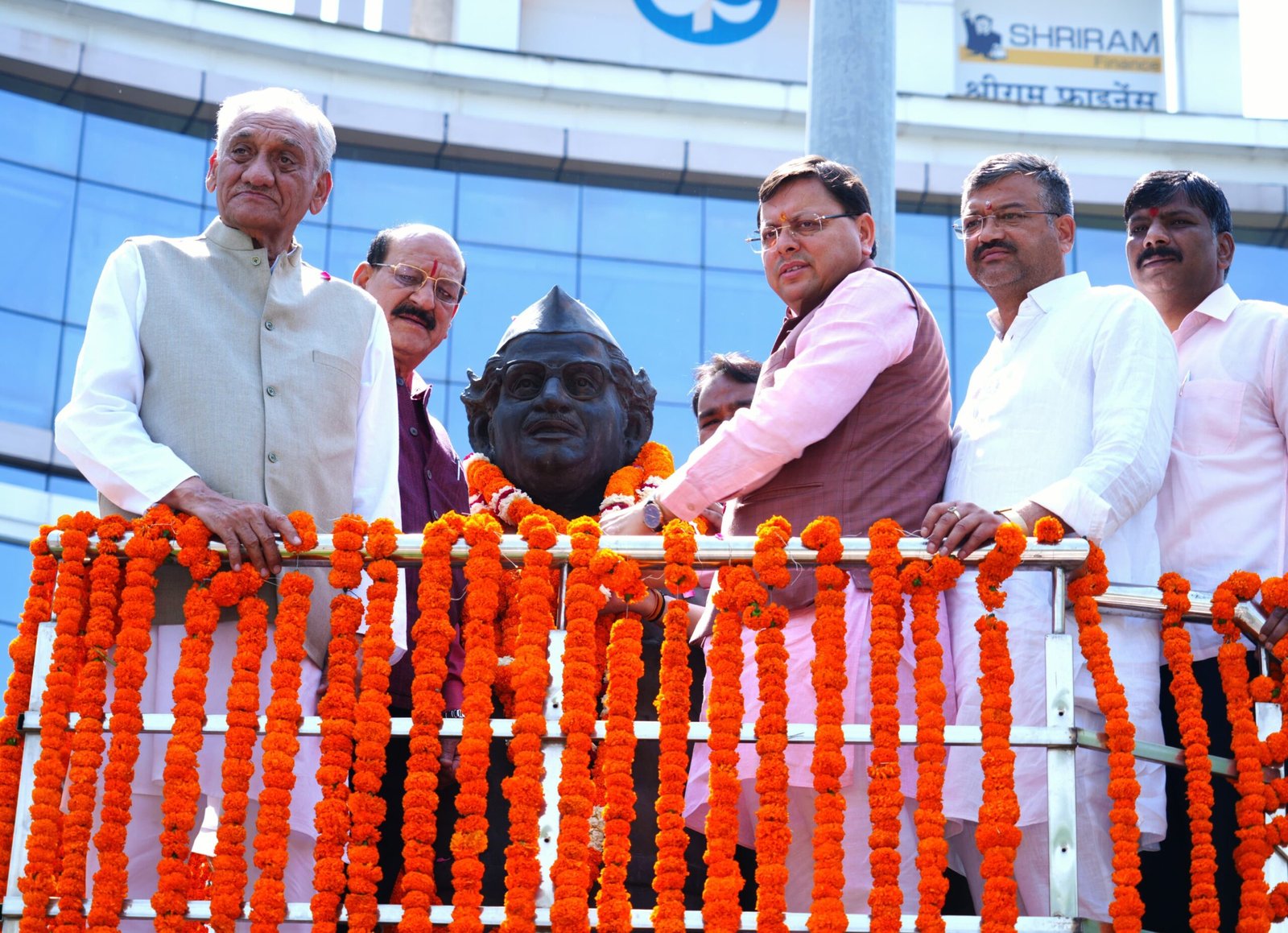 मुख्यमंत्री पुष्कर सिंह धामी ने स्व. हेमवती नंदन बहुगुणा की जयंती के अवसर पर बहुगुणा की मूर्ति पर किया माल्यार्पण