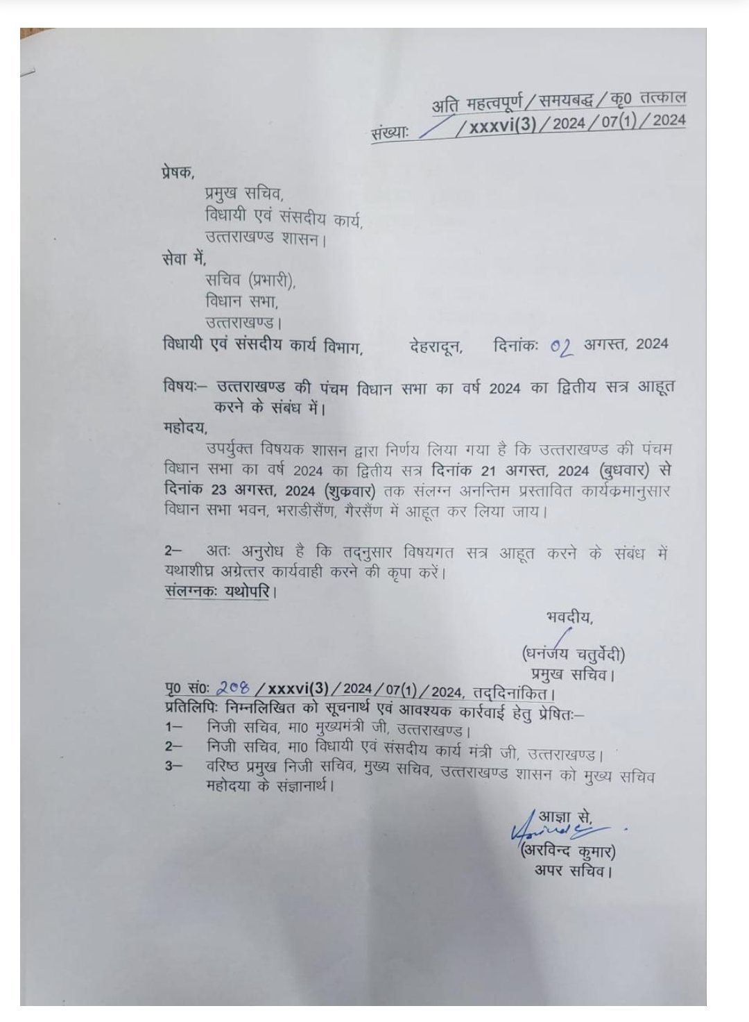 उत्तराखंड विधानसभा के मानसून सत्र की तिथि का ऐलान, गैरसैंण में होगा विस सत्र